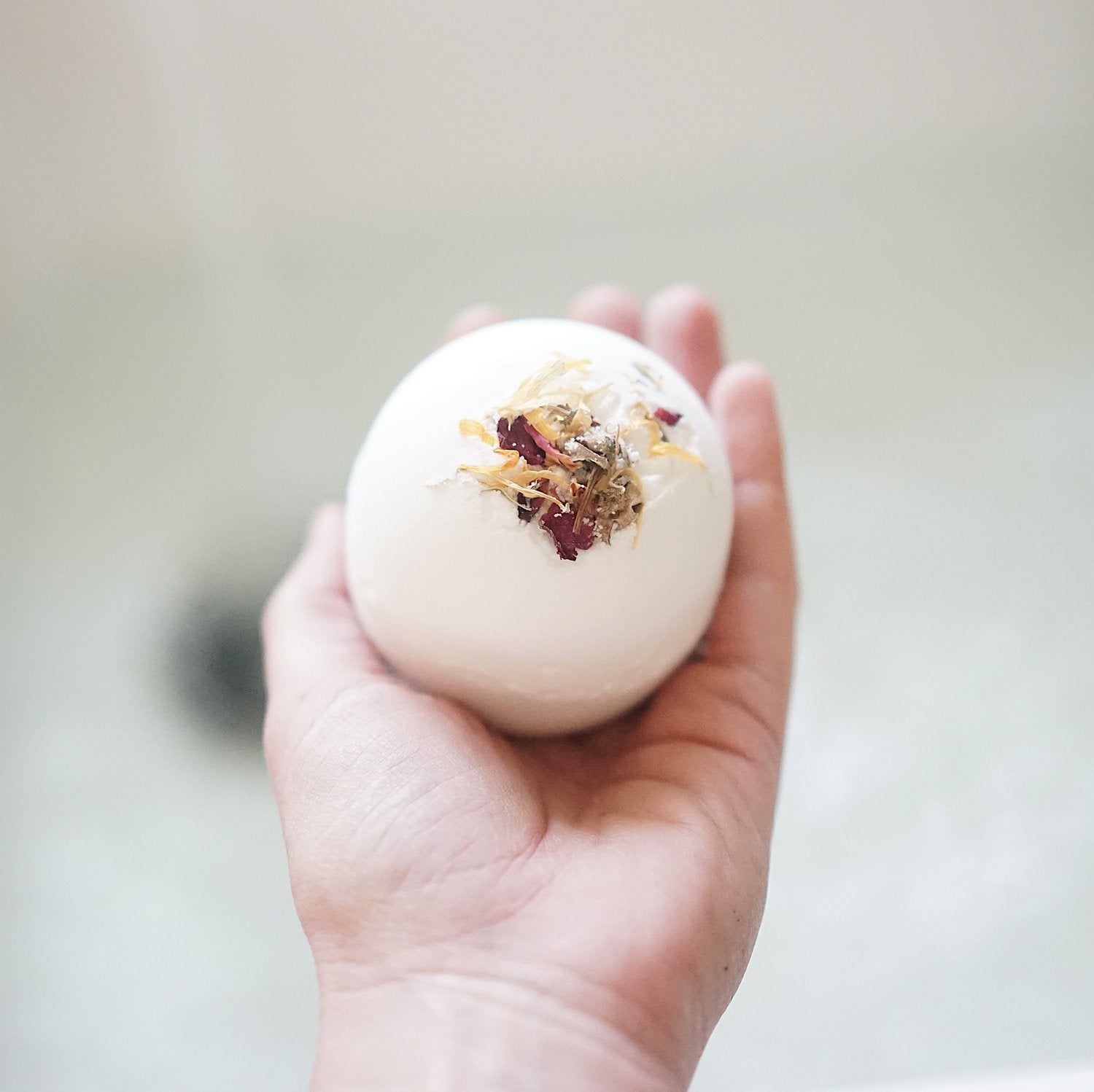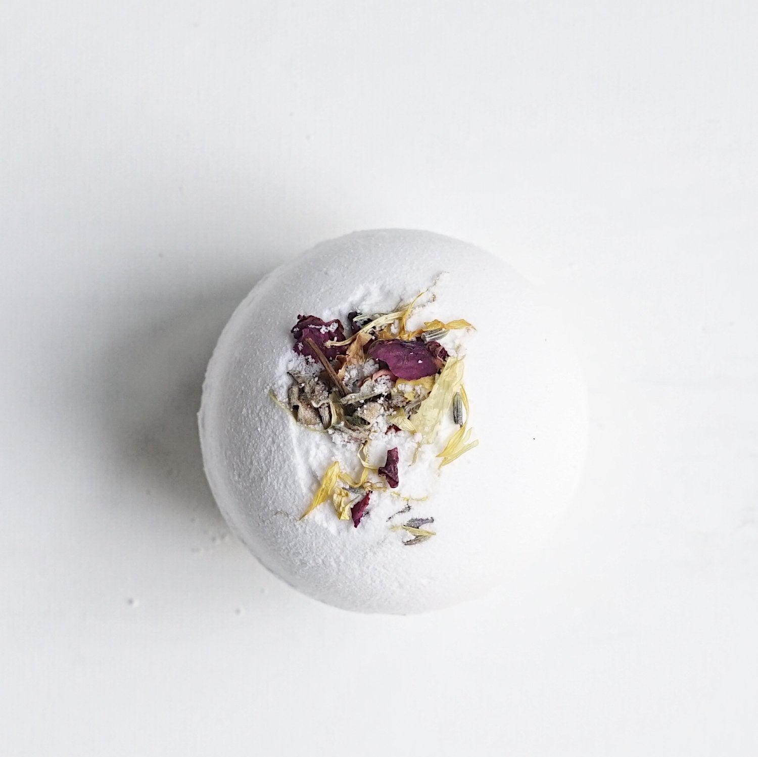 A super moisturizing, fizzing, floral bath experience all in one little bomb. Powered with shea butter and lavender essential oils by Among the Flowers.