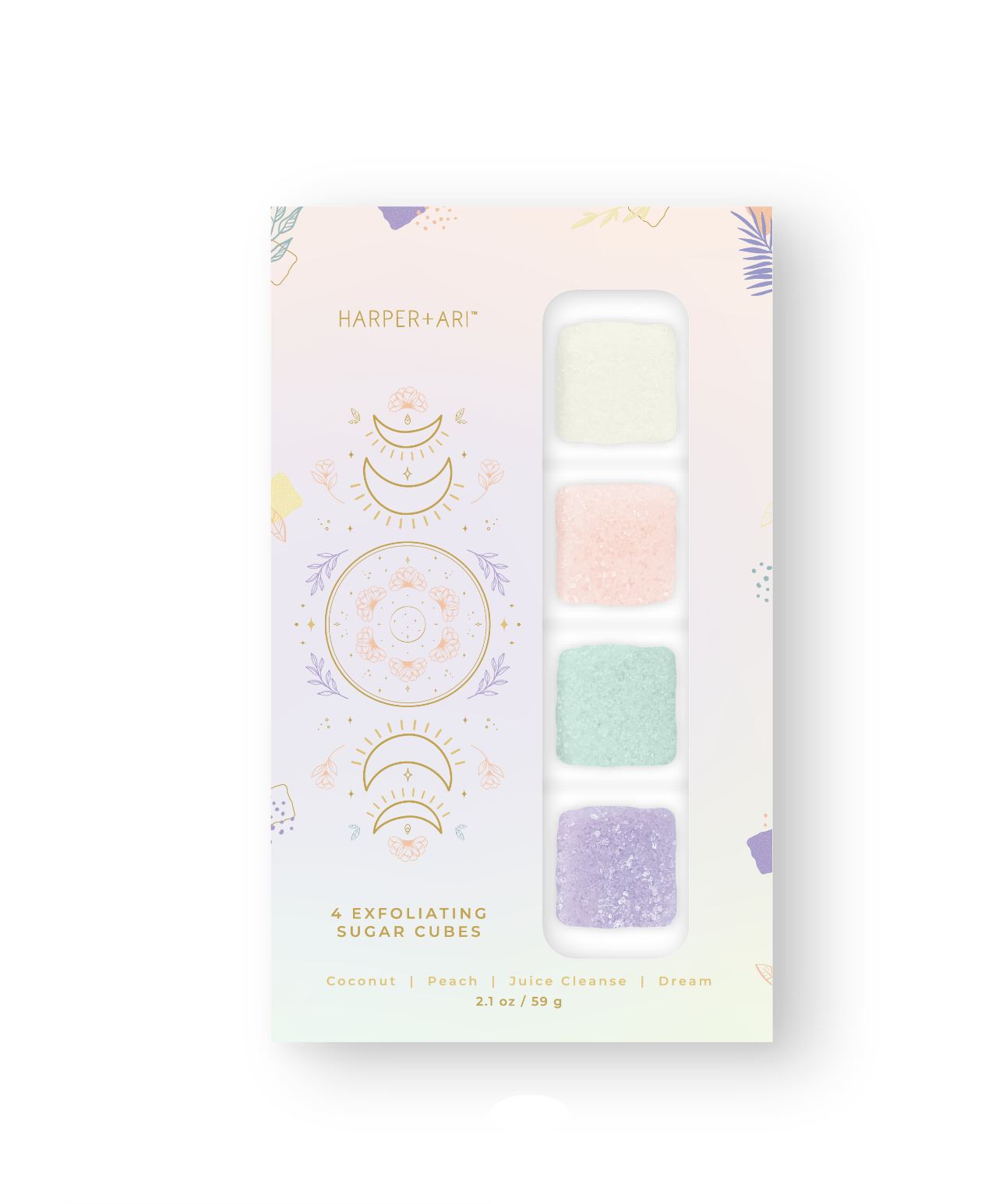 Inspired by the cycles of the moon, Harper + Ari presents four unique phases of self care. Sweeten your day with tropical Coconut and fruity Peach or bring the spa home with invigorating Juice Cleanse and soothing lavender Dream.
